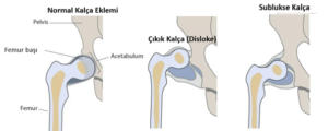 - Sublukse kalça : Dinlenme halinde femur başı bütünüyle yuva içinde normal konumda değildir; kısmen yuva dışındadır.